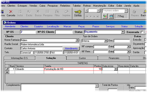 Você poderá visualizar esta propriedade na tela Ordens, na aba Solução. Assim que você selecionar a tarefa realizada o programa já inclui os pontos referentes a essa tarefa.